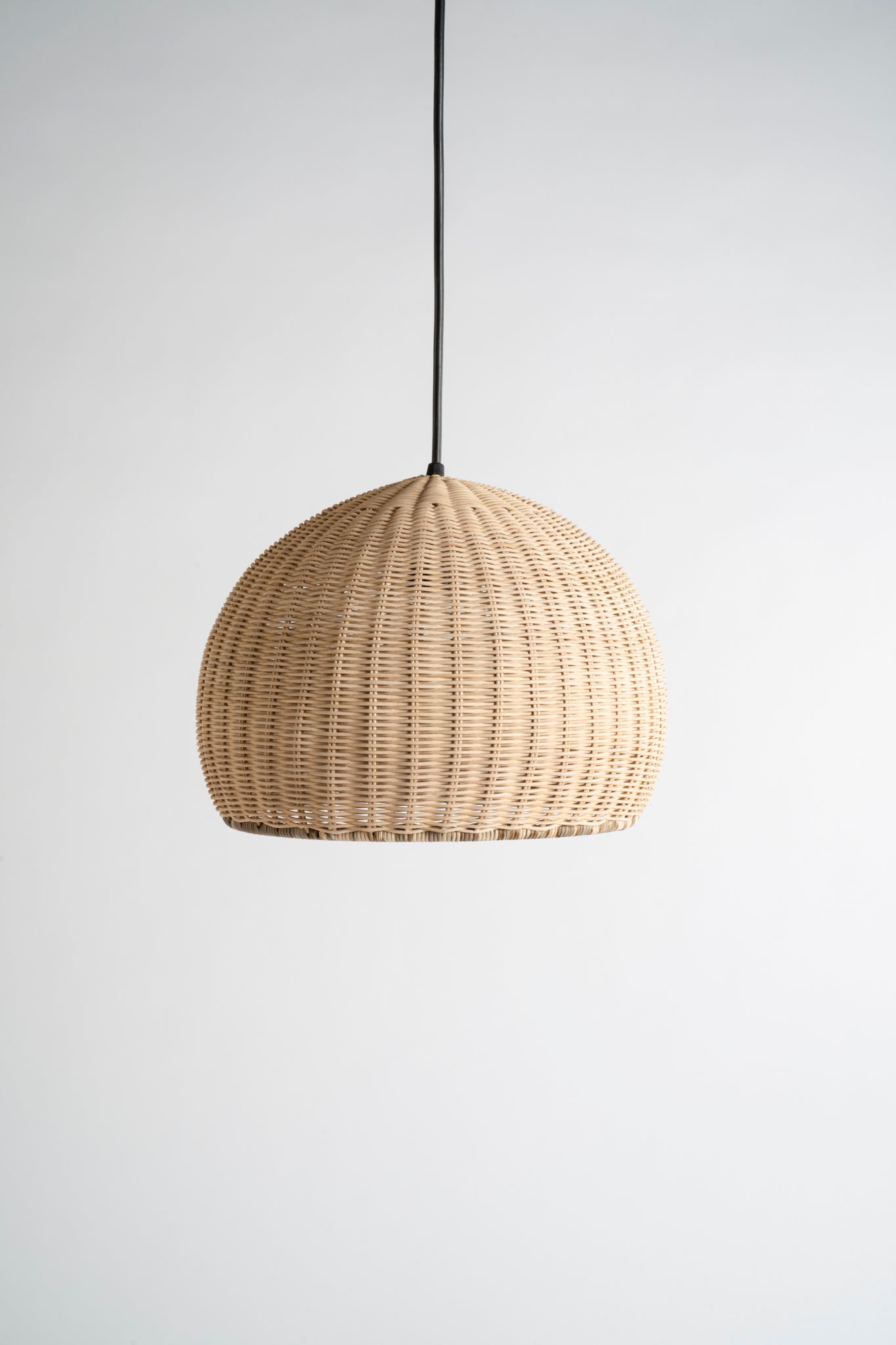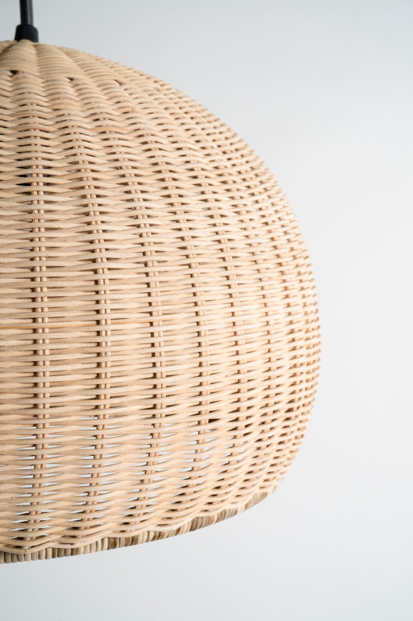 Lámpara colgante tejida con mimbre natural. Incluye cable de uso rudo color negro. No incluye foco.